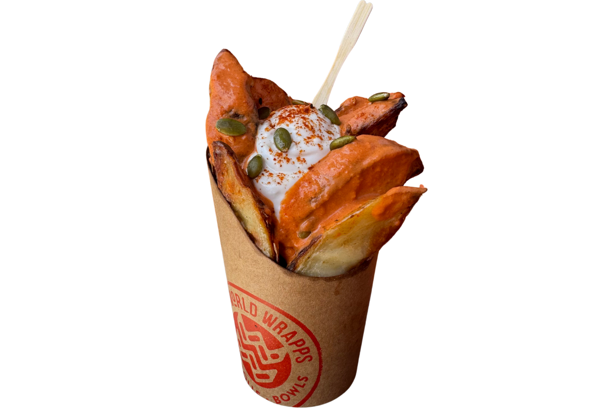 freshly cut and baked potatoes, shawarma spices, pumpkin seeds,