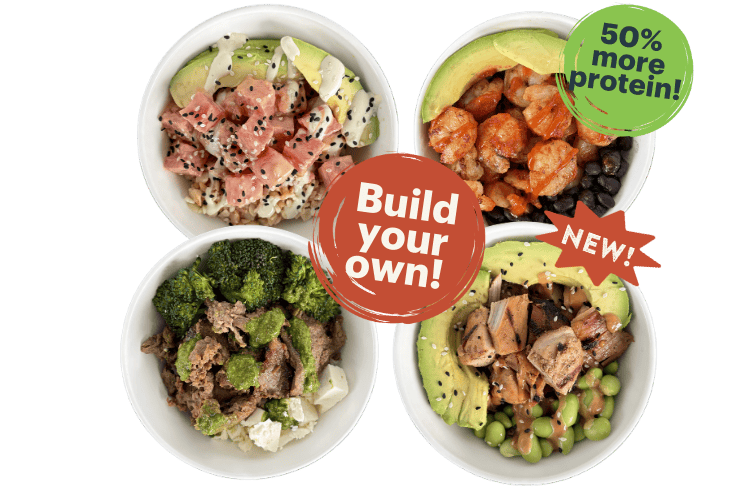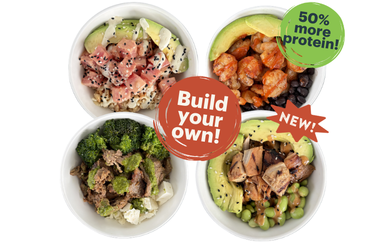 Create Your Own Bowl! Your choice of protein, 2 toppings, one sauce and a garnish.